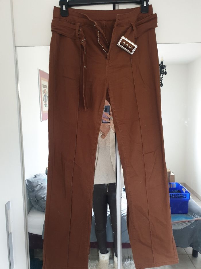 Pantalon droit avec sur piqûres sur le devant, et ceinture, jamais porté