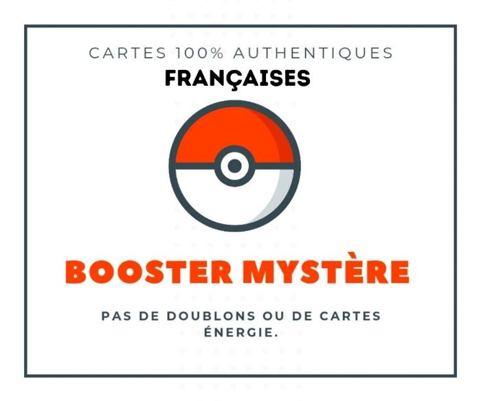Découvre ton trésor dans ces boosters mystère! Un plein de plaisir pour les grands et les petits. Parfait pour ceux qui veulent un max de plaisir en ouvrant. Pour les grands et les petits. 90% de chances de tomber sur des hits Cartes 100% authentiques françaises. Pas de doublons ou de cartes énergie. Cartes bien protégées pour le transport. Toutes les cartes sont en état NEUF/MINT et sous sleeve et toploader pour certaines. ❗ Envoi rapide et soignée. Préparation et envoi des colis filmés. Réductions sur les lots. ❗
