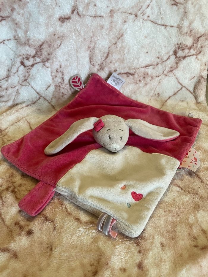 Doudou plat lapin rose beige blanc Anna et Pili Noukie’s - photo numéro 1