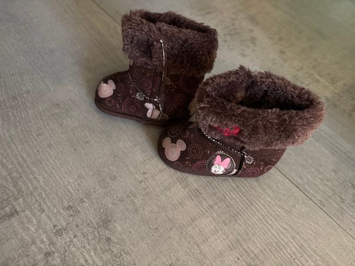 Bottes Disney mini marron, rose violet Goutte pré mise en très bon état Taille 0/3 M