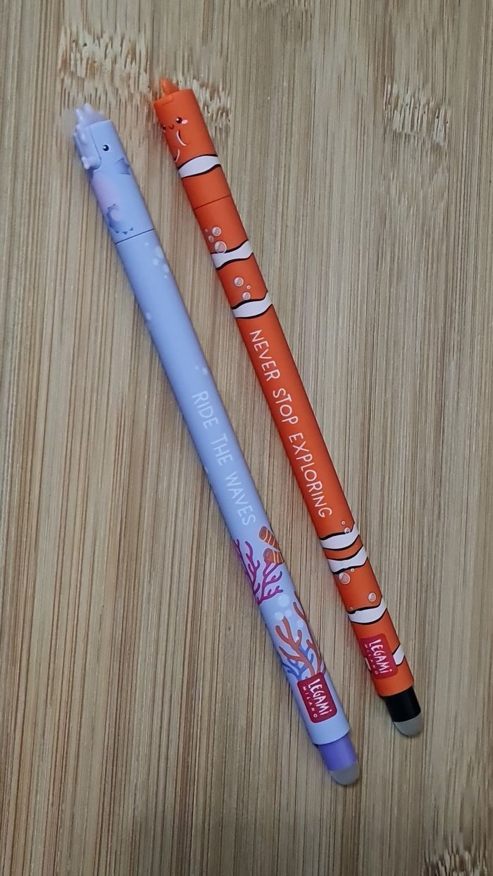 Legami Effaçable - NEUFS = 2 Stylos 🖊️ -> 1 Stylo POISSON NÉMO -> 1 Stylo HIPPOCAMPE de la Collection UNDER THE SEA 2024 Édition LIMITED EDITION avec la Mention sur l'emballage en haut à gauche + la Mention au dos des 3 Stylos = 1ʳᵉ édition ce qui explique son prix (ce n'est pas la réédition, c'est encore plus ancien) (ils seront envoyés dans le Set d'origine sans Tortue mais dans l'emballage d'origine) Édition Plus Commercialisée Définitivement depuis 2024 Neufs - Authentiques LEGAMI Au besoin, nous avons toutes les éditions Legami Effaçables et Lovely Friends qui existent depuis leurs débuts en 2021, toutes les éditions les plus recherchées, plus commercialisées. Tout n'est pas encore en ligne, nous demander une composition d'annonce sur mesure 🥰