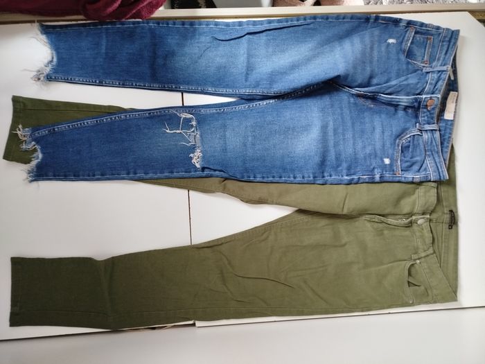 Stradivarius 38 kaki slim Bershka jean 40 skinny medium rise No woman kaki 38 Camaïeu gris 40 Tous en très bon etat 10€ le lot soit 2€ le jean