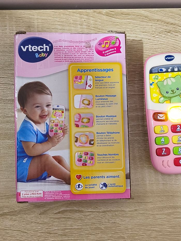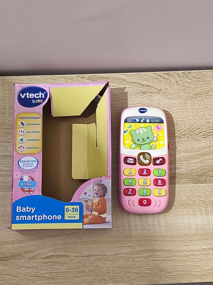 Je vends ce jouet d'éveil Vtech Baby téléphone rose. - Âge recommandé : De 0 à 3 ans - Fonctionnalités : Sonore, Lumineux, Interactif, bilingue Bon état. N'hésitez pas à me contacter pour plus d'informations sur ce jouet éducatif et amusant pour les tout-petits.