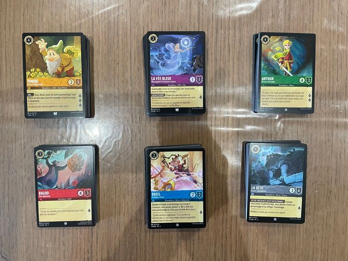 Lot de 247 cartes Lorcana du chapitre 2 en français . Contient des cartes communes, unco, rares et une super rare. Certaines cartes en plusieurs exemplaires . N’hésitez pas si vous voulez plus de détails ou de photos. Possibilité de remise si vous faites des lots.