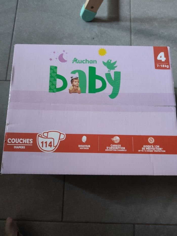 Carton de couches auchan baby taille 4 ( 7-18kg ) Neuf Prix en magasin 16.99€