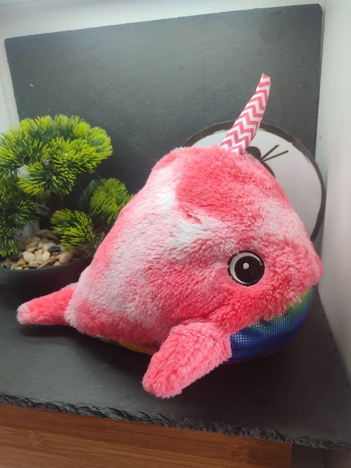 Peluche Doudou Narval Baleine Corne Max & Sax Rose Blanc Arc En Ciel Paillettes - photo numéro 1