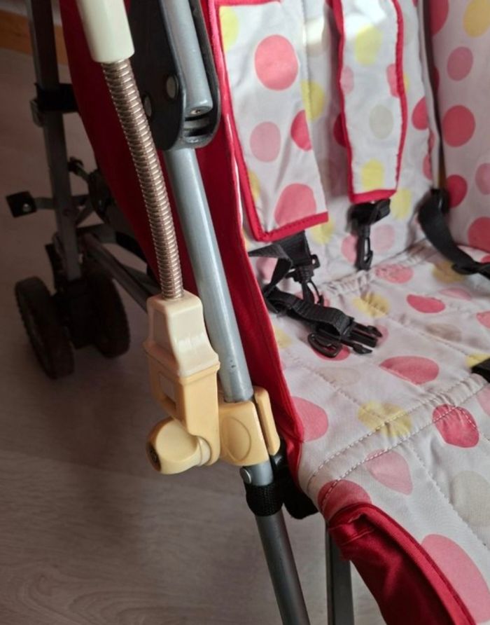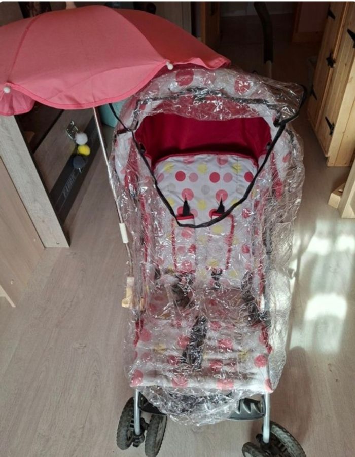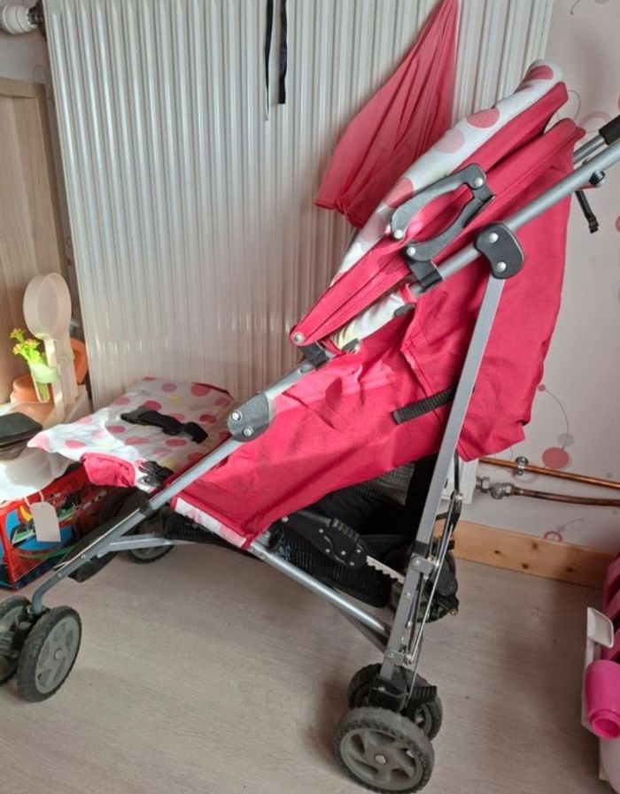 🌸Poussette canne vertbaudet rose fuchsia en très bon état. Les roues avant sont pivotantes, les poignées sont en mousse, elle à 3 positions d'inclinaison et un grand panier dessous. L'ombrelle rose vertbaudet est en tres bon état et L’habillage pluie universel est neuf.🌸 LE TOUT SERA LAVER AVANT LE DÉPART 🚭Famille non-fumeur 📦Envoi rapide et soigné