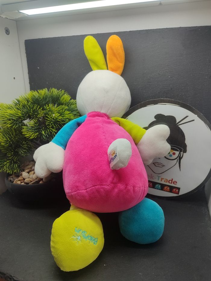Référence : PE0226  remise en main propre possible : Vertou (44) #geektradebebisol Stock : Bon état   Il y a un mécanisme à l' intérieur mais ne fonctionne pas vendu comme simple peluche Un fil qui sort du rond orange sur le ventre et 1 qui sort du sourire bleu sur la main Prénom écrit au stylo bic noir sur l étiquette Le logo derrière la peluche fait 20 cm de diamètre Afin de ne pas abîmer les doudous et de laisser le choix dans l'utilisation de la lessive les peluches ne sont pas lavées avant envoi Description complément : Petit nettoyage à prévoir Vous achetez ce que vous voyez les photos font entièrement partie de la description Transport : Les frais de transport comprennent les frais du transporteur ainsi que l'emballage pour protéger au mieux votre achat. Chaque achat est envoyé en format colis avec numéro de suivi Le poids du colis est de 500g finit (je ne peux pas faire moins) il peut donc y avoir plusieurs objets dans le carton si vous le souhaitez (contactez moi afinde grouper les frais de port) Référencement : #geektradedoudou #peluche #plush  #doudou #enfant #bebe #knuffel #comforter #felpa #Plüsch