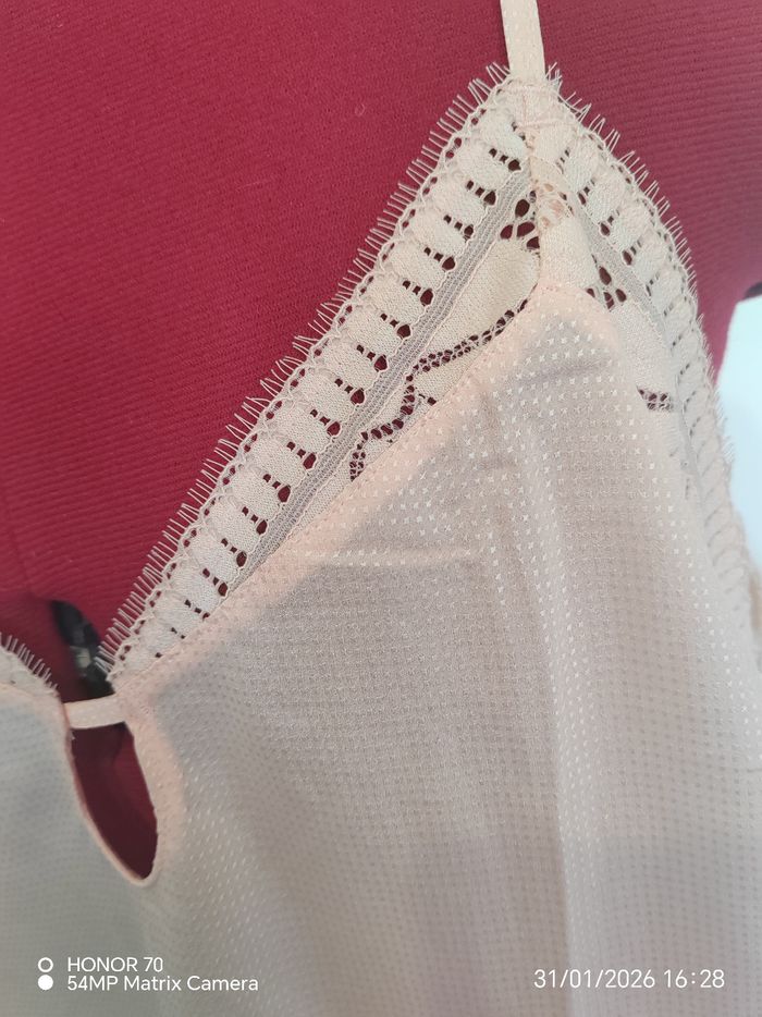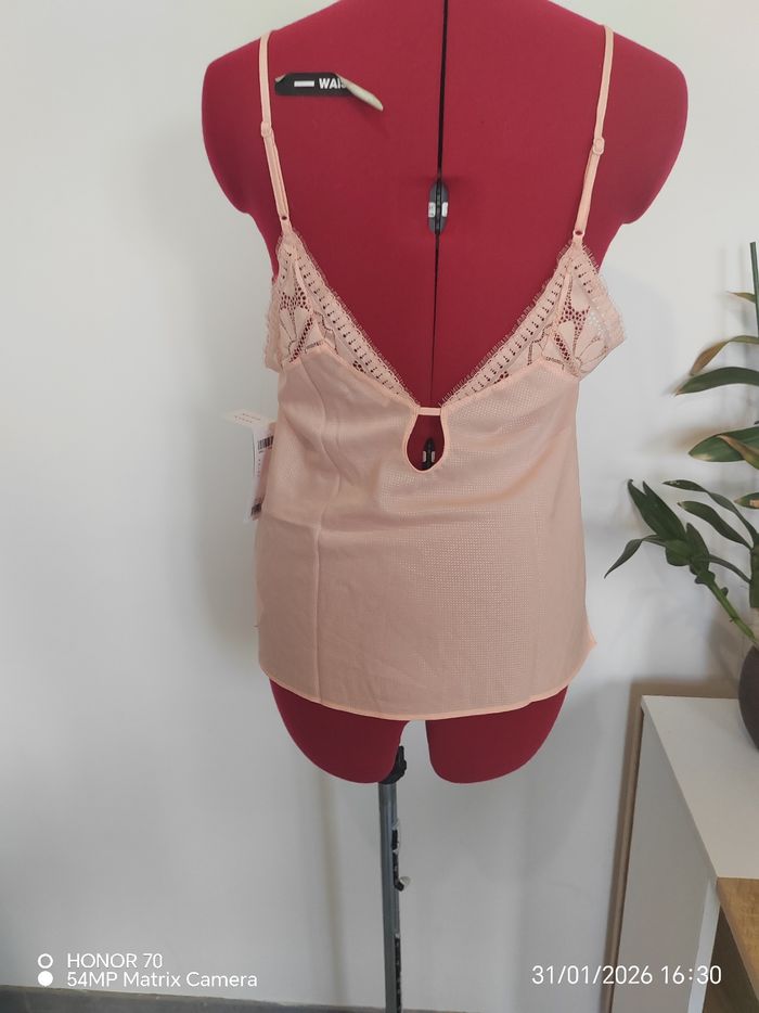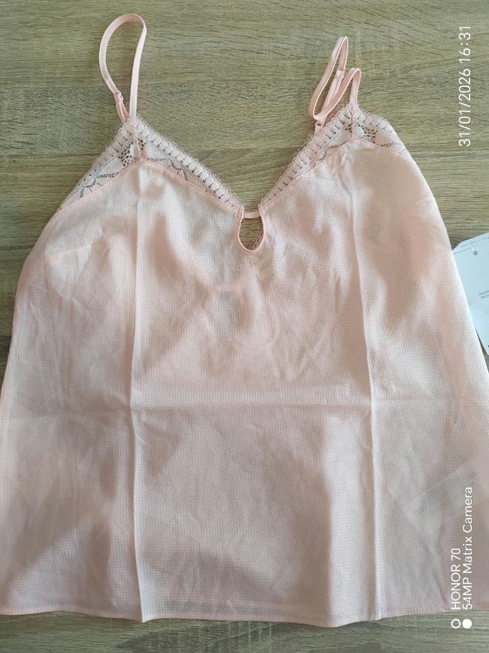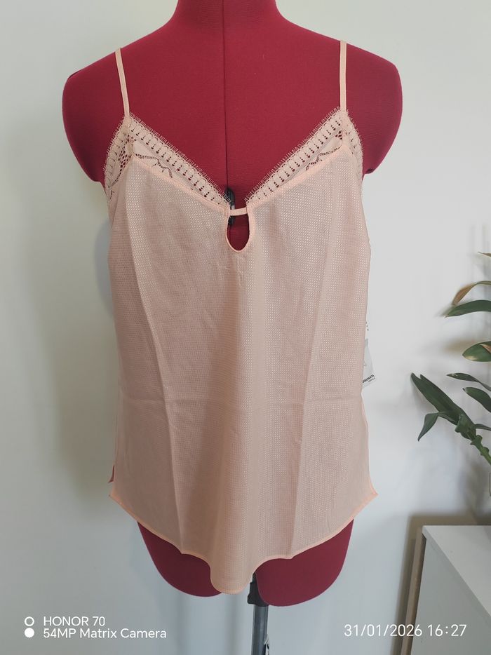 Peut se porter en intérieur comme a l'exterieur. Tres chic aussi sous une veste Matière fluide et légère Largeur à plat sous les aisselles 45 cm Longueur haut du top jusqu'en bas 51 cm Bretelles reglables #geliscyrilletailleM #geliscyrilletaille38 Ref2/CA5