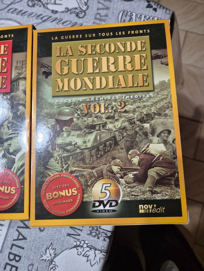 Vends collection complète "La Seconde Guerre Mondiale : Images d'archives inédites" (Nov’Edit). Un indispensable pour les amateurs d'histoire. ​L'ensemble se compose de 2 coffrets (10 DVD au total) : ​Volume 1 : Très bon état (1939 à 1942 + Guerre dans les airs). ​Volume 2 : NEUF, encore sous blister / emballé d'origine (1943 à 1945 + Guerre sur mer + Guerre sur terre). ​Contenu : Documentaires avec images d'archives rares et bonus inclus après chaque programme.