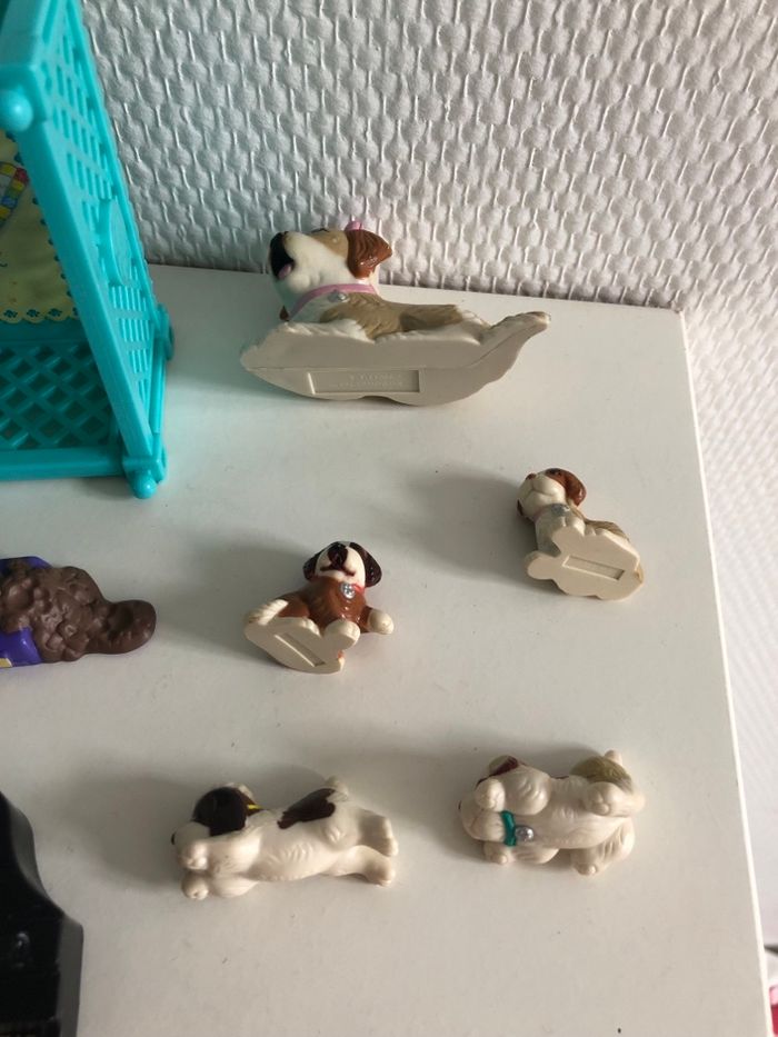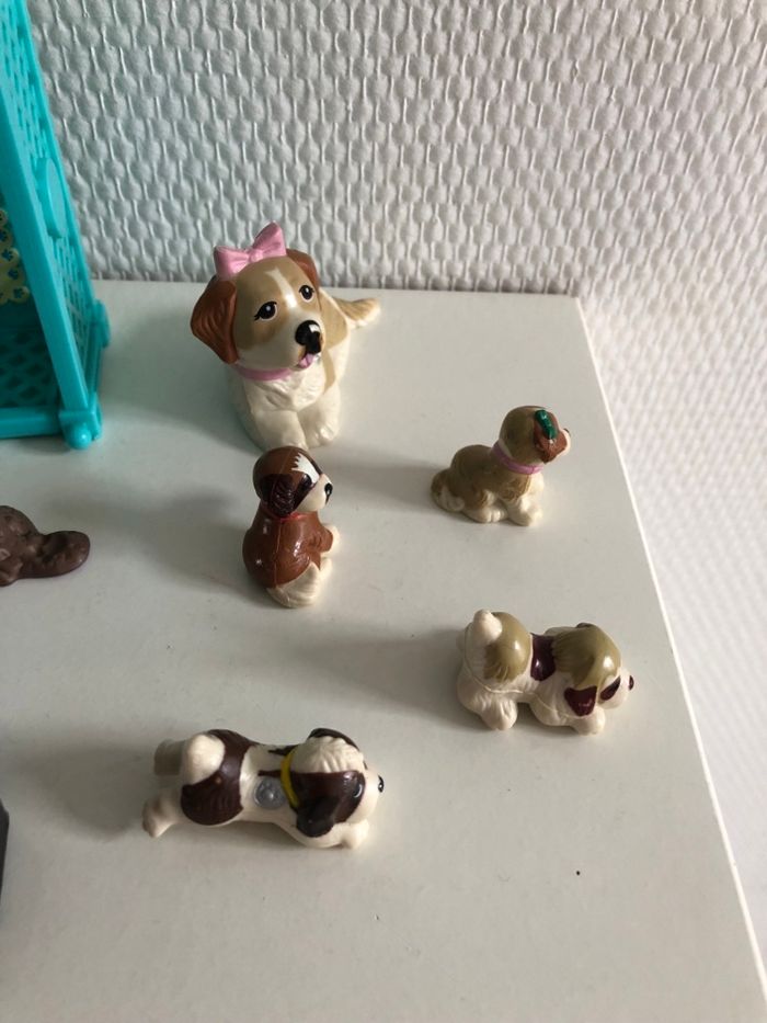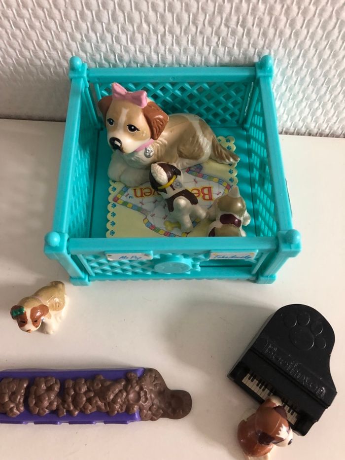 Little Pet Shop Beethoven des années 90 (quelques traces d’usure voir photos) Maman chien avec 4 chiots 1 petit piano 1 pantoufle 1 gamelle