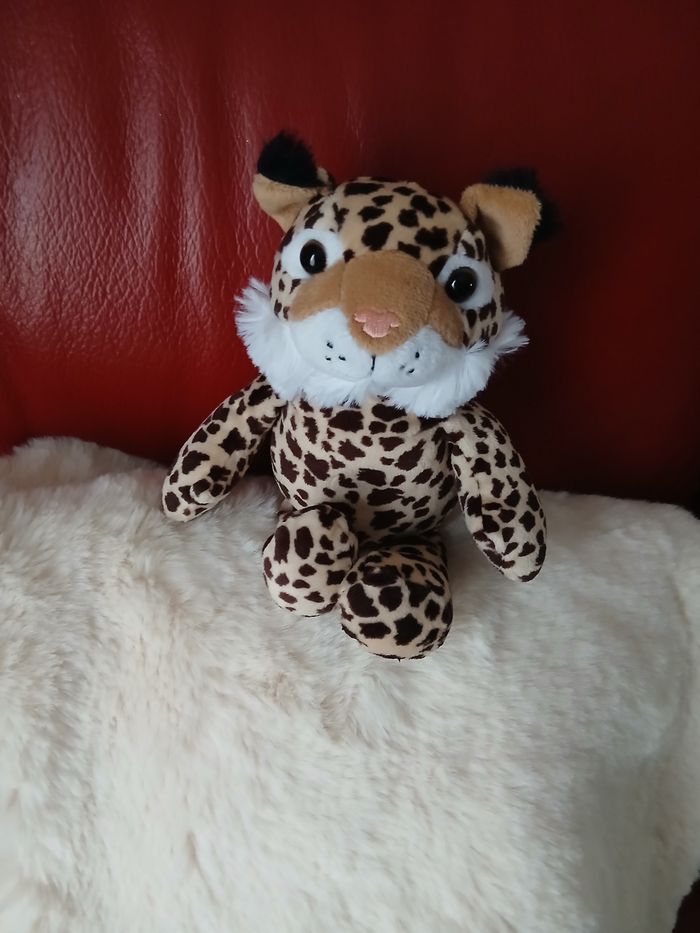 Doudou-Peluche entièrement rembourré; yeux boutons et museau brodé. Peut tenir en position assise. Hauteur totale de 22 cm; lavable à 30° // voir photos pour détails