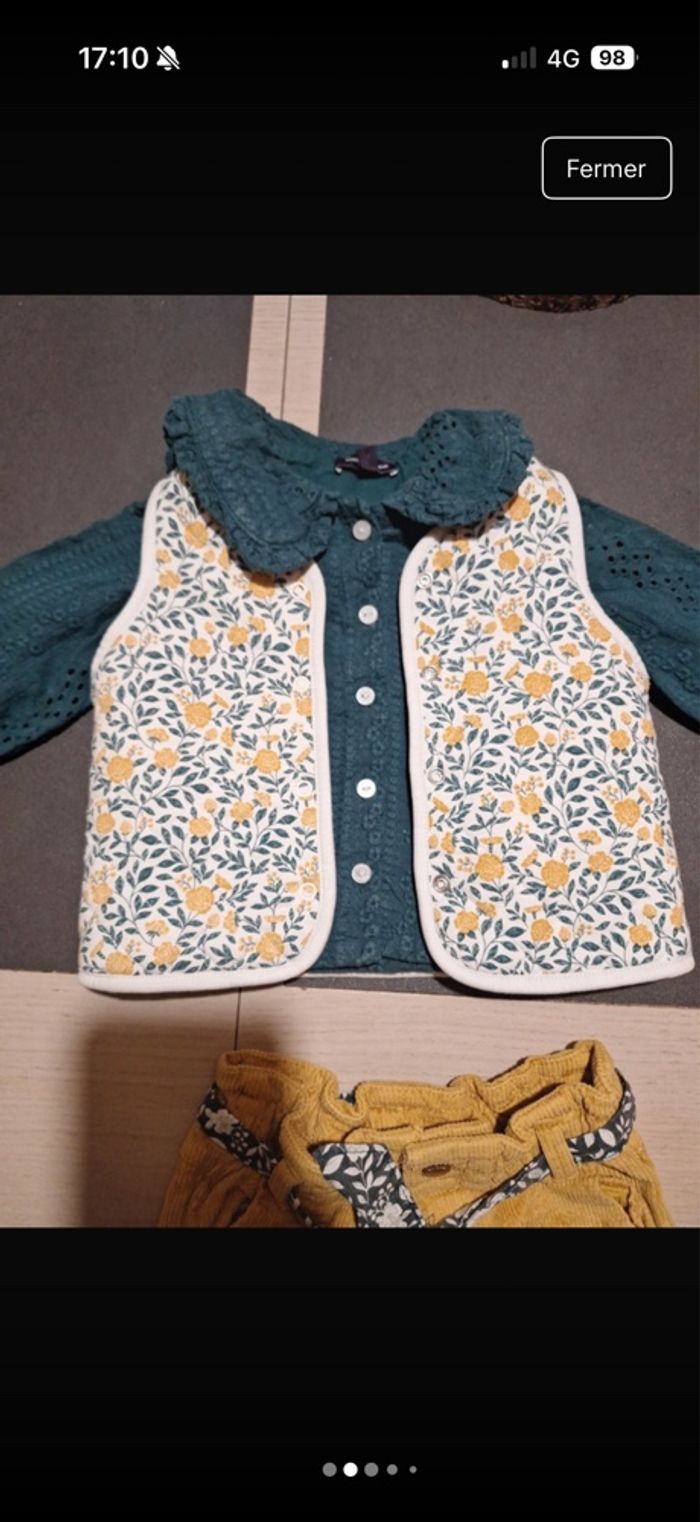 Ensemble sergent major comprenant : - un short en velours jaune moutarde taille 9 mois - un haut manche longue taille 12 mois - un gilet sans manche taille 12 mois