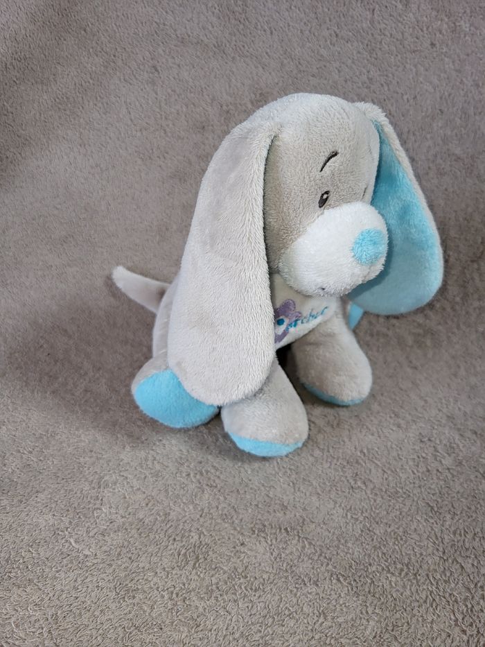 Doudou peluche chien Arthur Arthur et Lola Bebisol Coloris gris, blanc et bleu Dimension environ 17cm assis Comme neuf Très bon état N'a pas été choisi comme LE doudou #virgy61joueteveil #virgy61puericulture