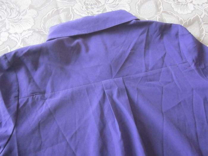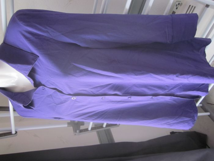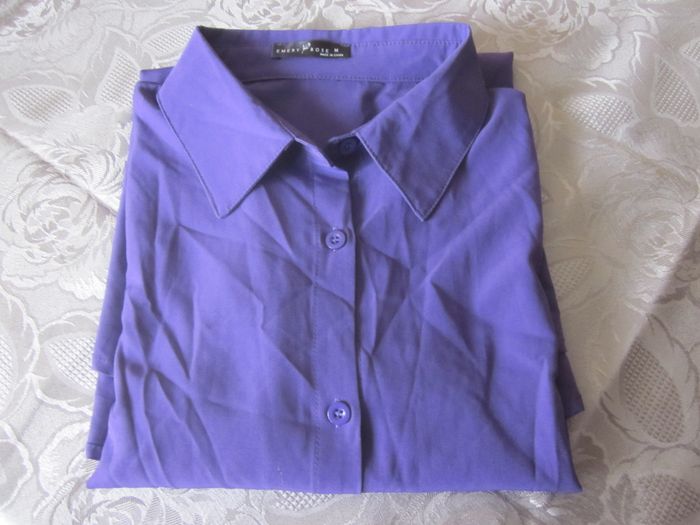 M, chemise longue, bleu sur la photo mais violet, base arrondie, dos plus long, emery rose