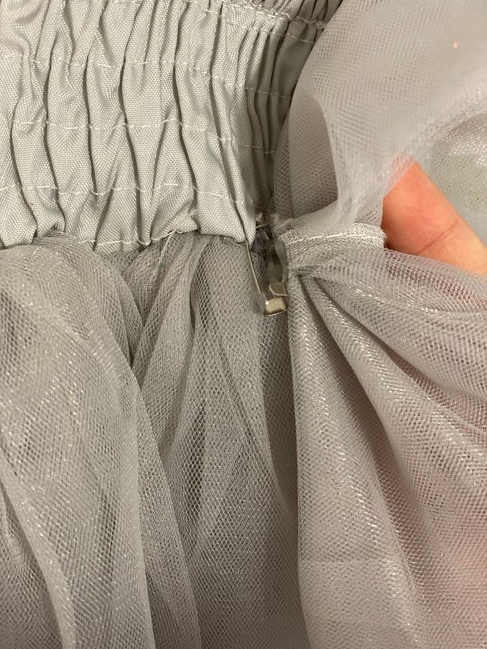 Cette magnifique robe vient de l'étranger ; la jupe bouffante, les fleurs et le nœud sont amovibles.