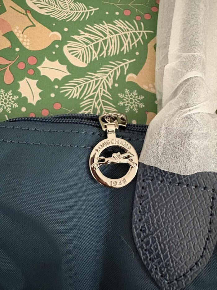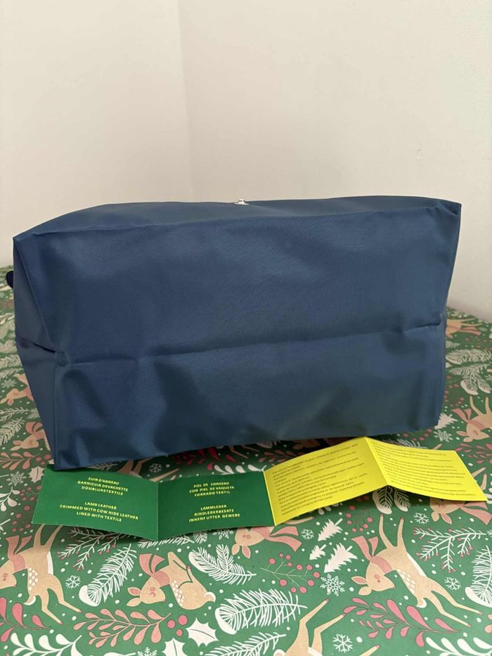 Sac fourre-tout Longchamp de couleur blue fourni dans sont emballage d’origine encore etiquetté ❤️ Neuf neuf jamais servie couture avant arrière produits authentique ☺️☺️ C’est le grand format taille L 45x35 sur 30 cm de hauteur convient pour les cours.dimensions en dernière photos 😊 Cadeau de Noël dont je ne me servirai pas