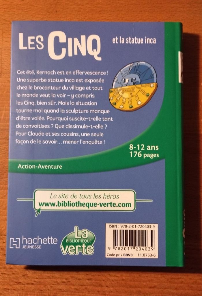 Livre Les Cinq et la statue inca Une histoire du Club des Cinq inspirée des personnages d'Enid Blyton Collection Bibliothèque Verte pour enfant de 8-12 ans Livre neuf