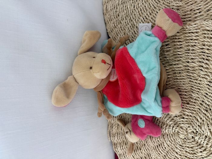 Doudou marionnette chien DOUDOU ET COMPAGNIE Fraise bleu rose - photo numéro 1