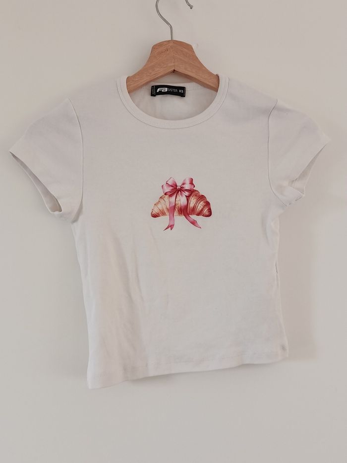 T-shirt blanc avec motif croissant Taille XS Très bon état