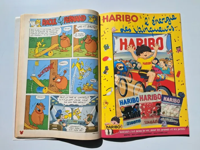 Le Journal de Mickey n°2500 Numéro Anniversaire du 17 Mai 2000. Dans le contenu, il y a des bandes dessinées des bébés Disney, Déblok, Dingo, Minnie, L'Elève Ducobu, Mickey, Raoul & Fernand, L'énigme de Mickey, Donald. Il y a également des publicités vintage de l'époque sur Prince de Lu, Bburago, Mickey Parade, Danone Cup 2000 avec Lilian Thuram, Haribo, Cheetos, le jeu vidéo Donald in Cold Shadow, etc.