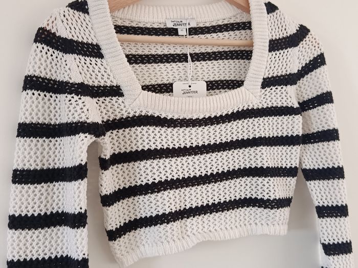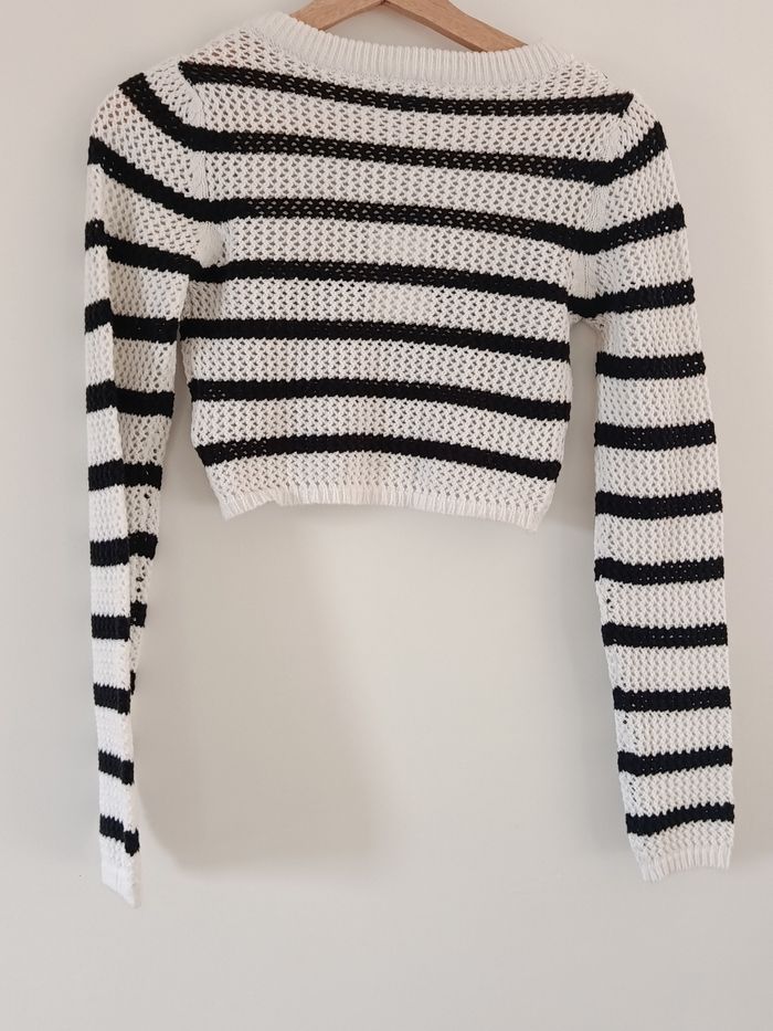 Pull court rayé noir et blanc Mailles ajourées Neuf