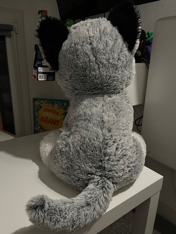 Peluche chien loup. 50 cm. Toute douce. Prix d’achat : 45€. Neuve