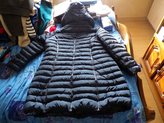 Longue doudoune bleue marine, mixte. Taille L, marque Piment Rouge. Très bon état.