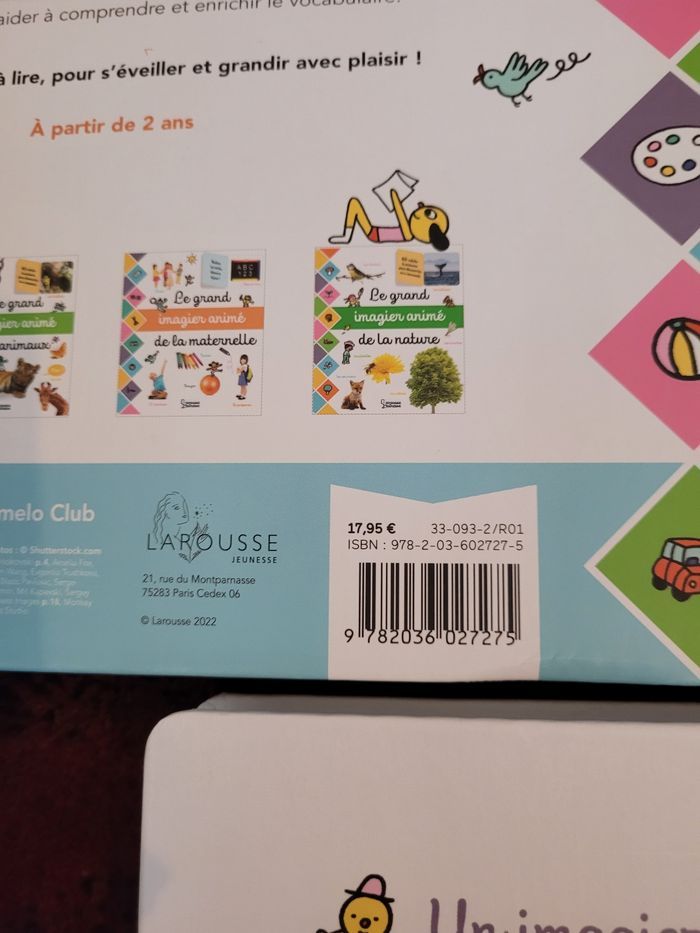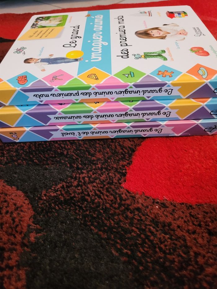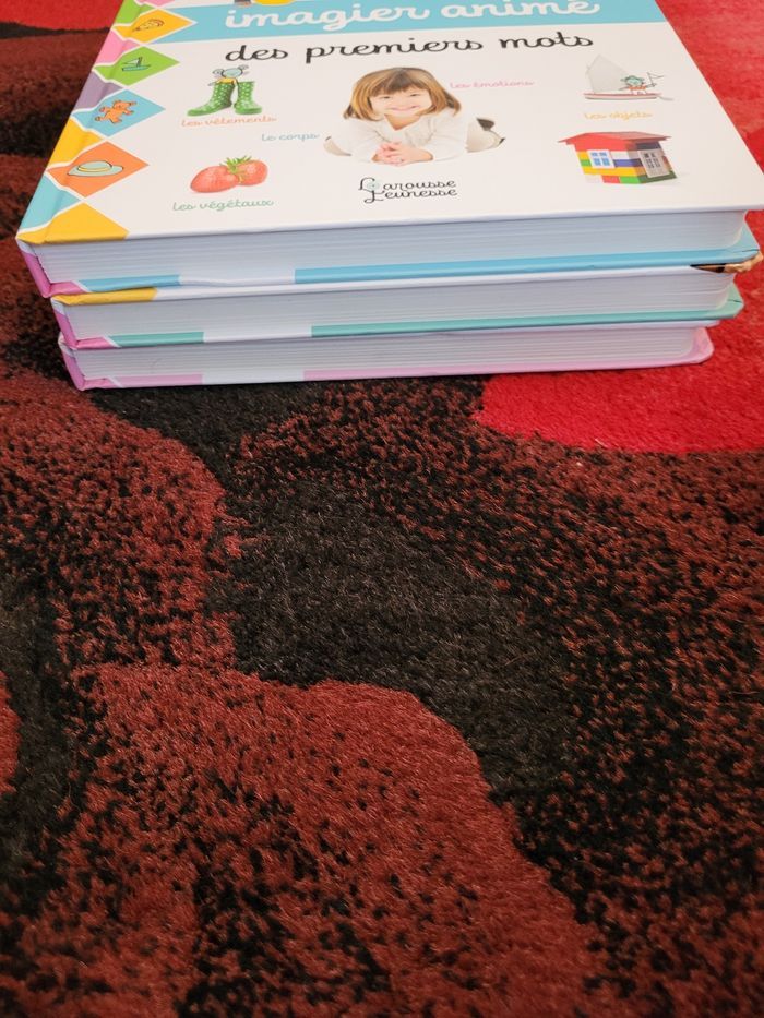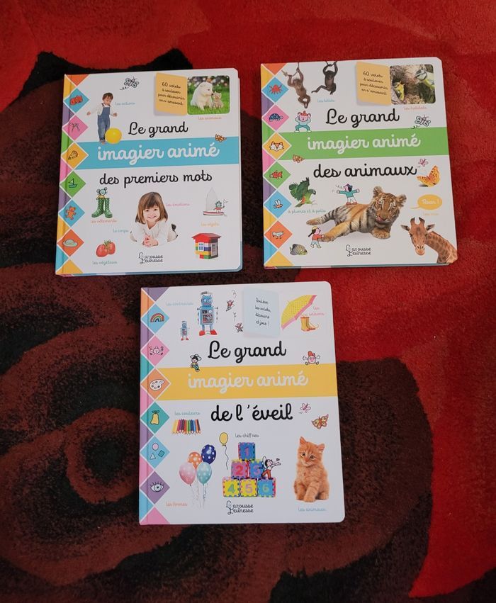 Lot de trois Grand imagier animés larousse jeunesse Le Grand imagier animé des premiers mots neuf Le grand imagier animés de l'éveil comme neuf sauf une page voir photo un peu abîmé sur un pop up. Le grand imagier animés des animaux neuf. Acheté 50 euros.
