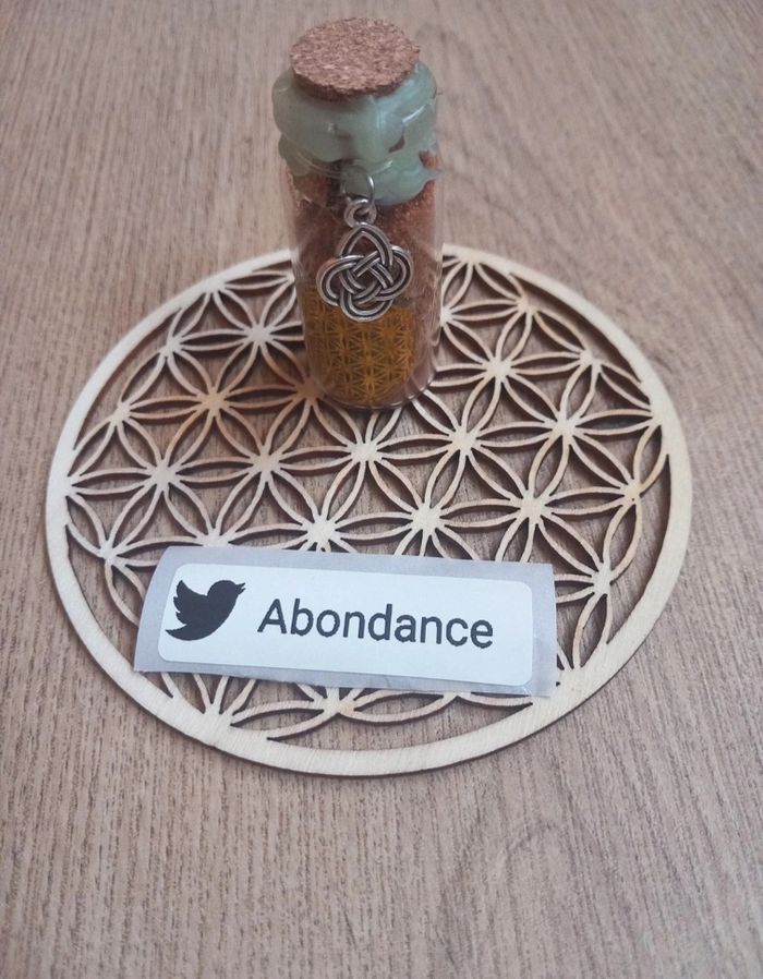 Faite avec intentions, aide à l'abondance. Je peux en refaire sur demande. Vendu avec le socle fleur de vie en bois.