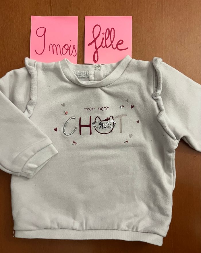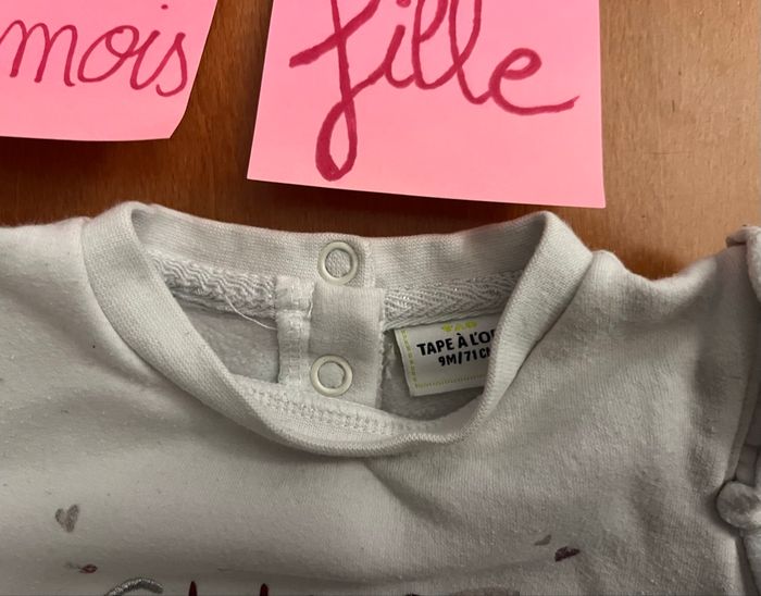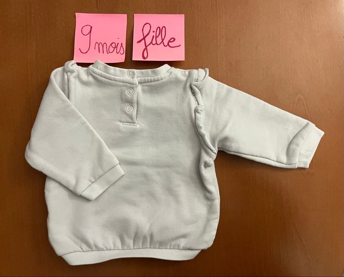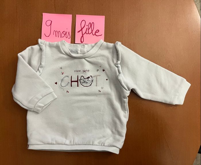 Bonjour, A vendre sweat-shirt, en taille 9 mois de la marque Tape à l’œil : 1€ Il a été porté il y a des bouloches voir les photos. Mis sur d’autres groupes de vente Regardez dans mon dressing j’ai des vêtements garçon du 3 mois à 10 ans Et des vêtements fille de la naissance à 4 ans