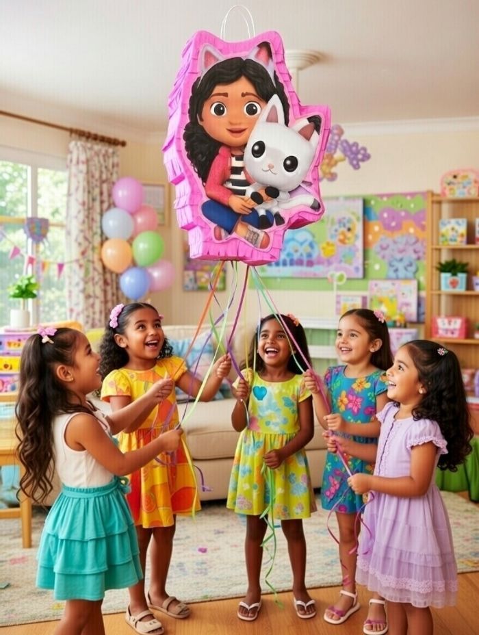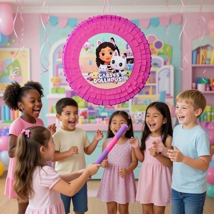 Gabby et la maison magique / gabby's dollhouse pinata. Pinata et bâton Pinata à casser Gabby chat Dimensions : 40cm d'hauteur Bâton en bois coloré de 40cm Article neuf. Elle contient une trappe derrière pour la remplir et un crochet pour la suspendre. Pinata à ficelles aussi disponible Existe en version à ficelles. #anniversairegabbyetlamaisonmagique #anniversairegabby #anniversaireenfant #anniversairefille #cadeaudanniversaire #decorationfete #decorationanniversaire #fêtedanniversaire #gabbysdollhouse #gabyetlamaisonmagique #pandypattes #gabbychat #gabychat #decorationgabyetlamaisonmagique #decorationgabbychat