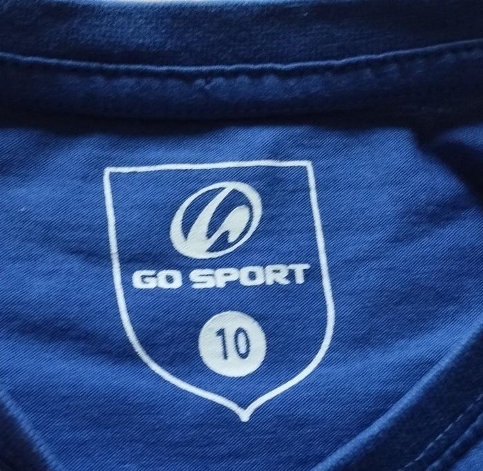 T-shirt manches courtes de marque Go Sport taille 10 ans Coloris bleu, imprimé drapeau bleu blanc rouge Lettrage France au dos