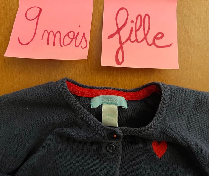 Bonjour, A vendre gilet en taille 9 mois de la marque Obaïbi: 1€50 Il a été porté voir les photos. Mis sur d’autres groupes de vente Regardez dans mon dressing j’ai des vêtements garçon du 3 mois à 10 ans Et des vêtements fille de la naissance à 4 ans