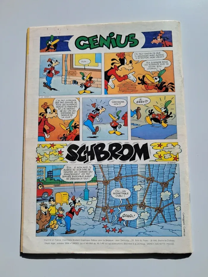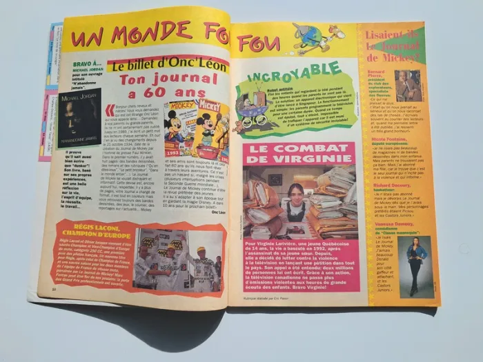 Le Journal de Mickey n°2209 : Spécial 60 Ans du 19 octobre 1994. Dans le contenu, il y a des bandes dessinées des Bébés Disney, Mickey, L'Ecole Abrcadabra, Robert le Robot, les Déblok, l'Enigme de Mickey, Télé Scoop, Donald (par Don Rosa), Genius.