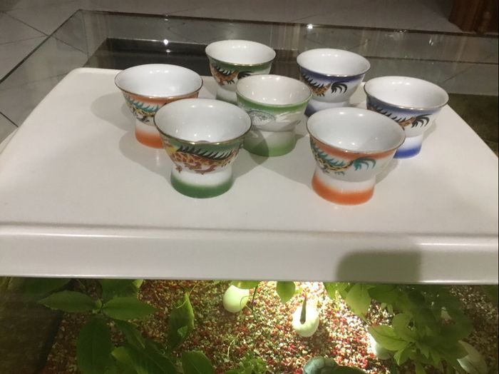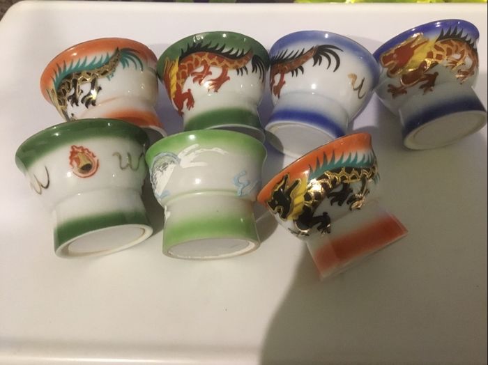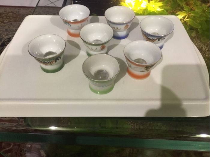 Ensemble de 7 verres à saké multicolore très bon état. jamais servi