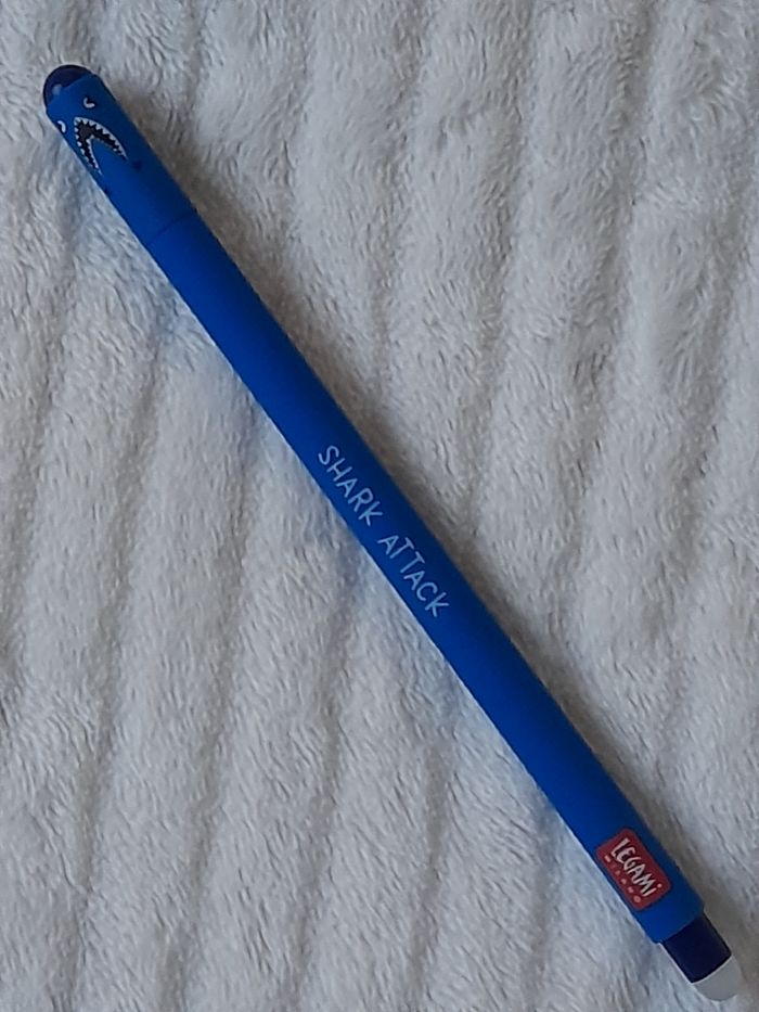 Stylo gel effaçable NEUF et AUTHENTIQUE Legami Milano, modèle Requin triste (fâché), n°EP0006. Hors production. RARE.