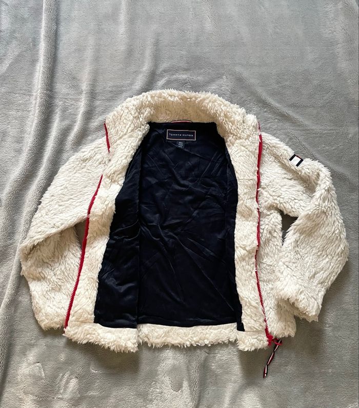 Veste polaire Sherpa Tommy Hilfiger écrue & rouge - S - photo numéro 1