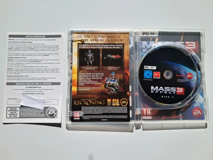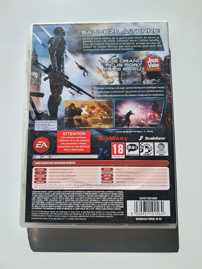 Jeu PC Mass Effect 3. C'est le jeu officiel et d'origine. 🛸 Genre : Action RPG, à la troisième personne. ✅ En très bon état 🇫🇷 Version française. Le jeu contient : 🔹 la boite extérieure (la couverture est reversible, j'ai montré pour l'exemple sur ma dernière photo) 🔹 le dépliant pour l'installation 🔹 le dépliant publicitaire de EA 🔹 les 2 disques en très bon état, sans rayure. 🔸 Développé par Bioware (les auteurs des séries Baldur's Gate, Neverwinter Nights, Dragon Age et Star Wars Kotor) 🔸 Edité par Electronic Arts Noté 9,5 sur 10 par le site IGN et 18 sur 20 par le site JeuxVideoCom.