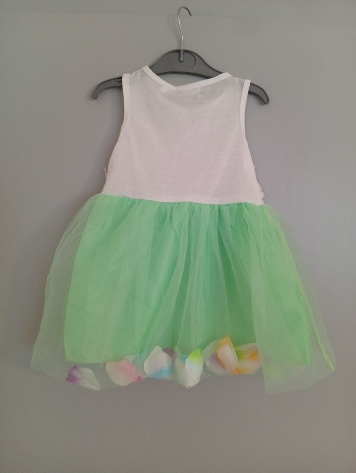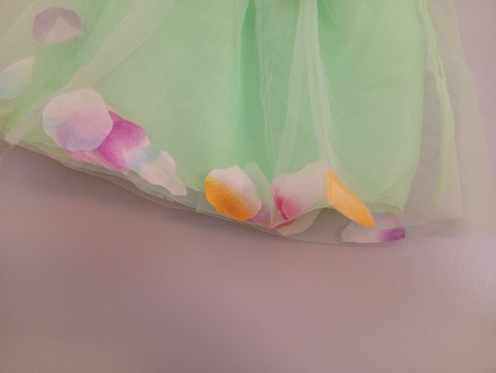 Avec pétales multicolores dans le tulle. Pourrait convenir pour un déguisement de fée du printemps.