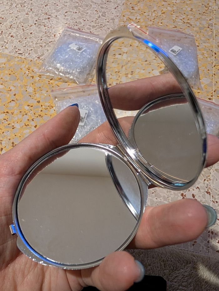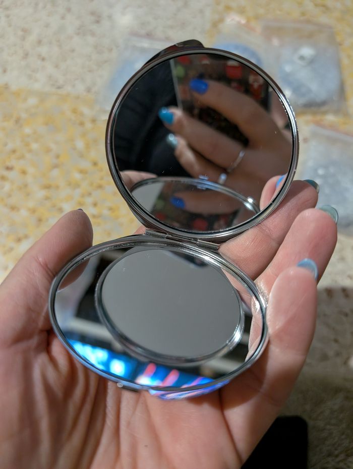 Bonjour Je vends ce miroir rond neuf a customiser selon vos envies, avec les enfants ou autre, laissez libre court à votre imagination ! neuf jamais servi Moi je les avais customiser avec la fimo liquide et des cabochons voir photos vous achetez ce que vous voyez