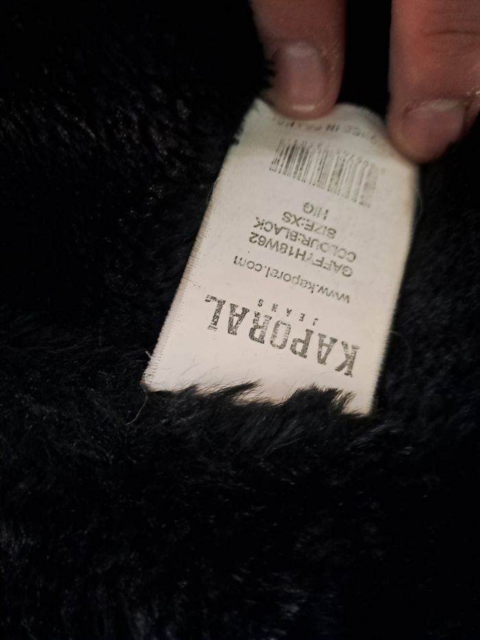 Veste kaporal Taille XS Fourrure qui peut se retirer, ainsi que capuche. 2 poches sur l'exterieur de la veste, et 1 a l'interieur Fermeture eclair avec pression Quelques marques d'usures au niveau des poches et le long de la veste (voir photos)