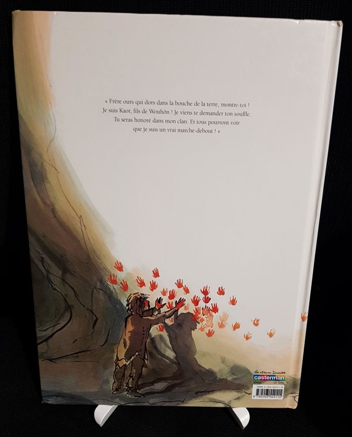 " Frère ours qui dors dans la bouche de la terre, montre-toi ! Je suis Kaor ; fils de Wouhôn ! Je viens te demander ton souffle. Tu seras honoré dans mon clan. Et tous pourront voir que je suis un vrai marche-debout, ! " Prix Neuf indicatif : 16,95 E. Édition cartonnée Grand Format 263x360 EAN 9782203554115 oct-05 Bon État, usure sur les angles, angles de coiffes et chocs sur bords, 3 angles ouverts sur maxi 7 mm, marques sur couvertures (principalement en 4ème), intérieur TBE, sans écritures. Une imposante liste de livres pour enfants disponible, essayez un premier contact :) Poids : 915 g