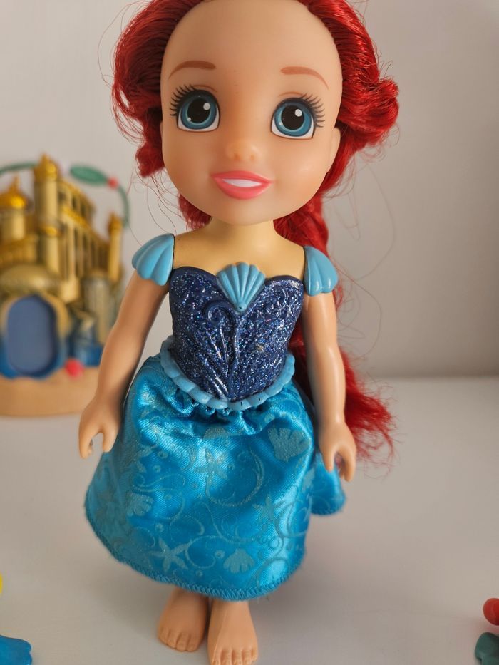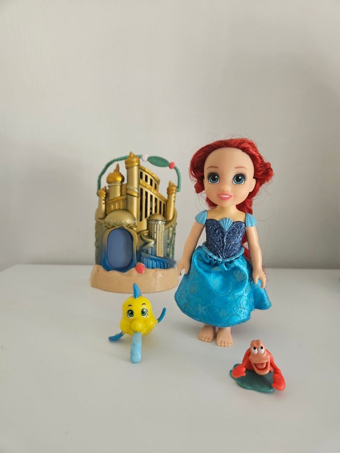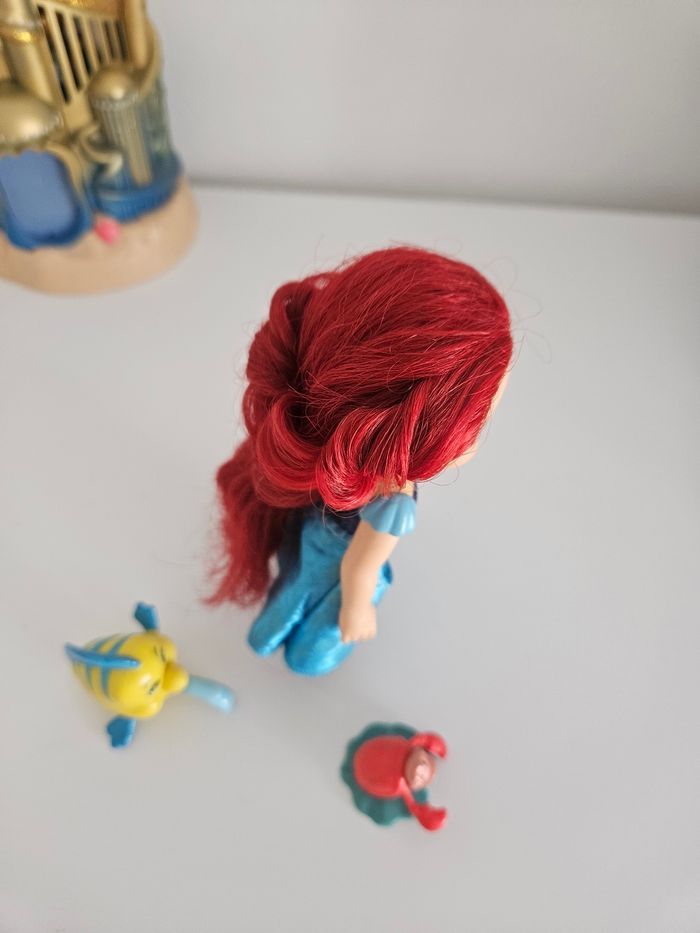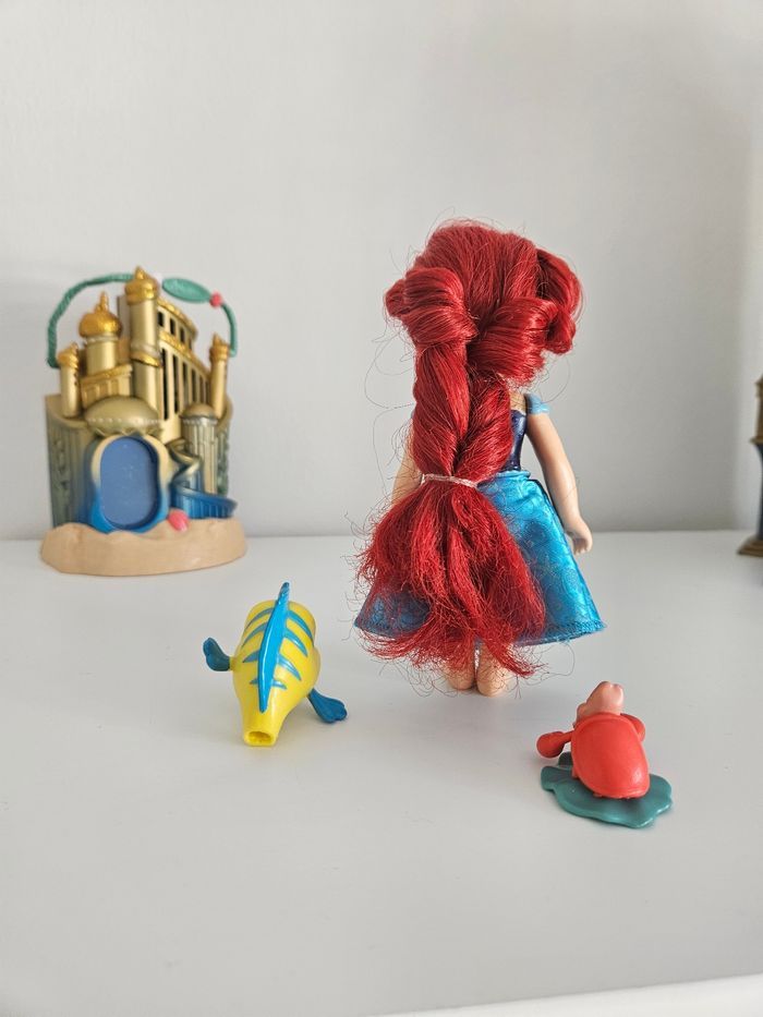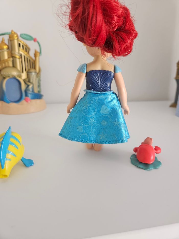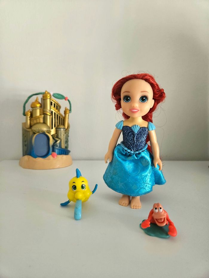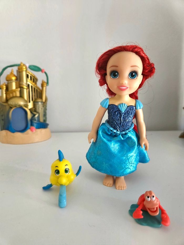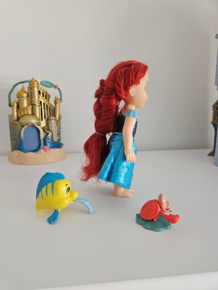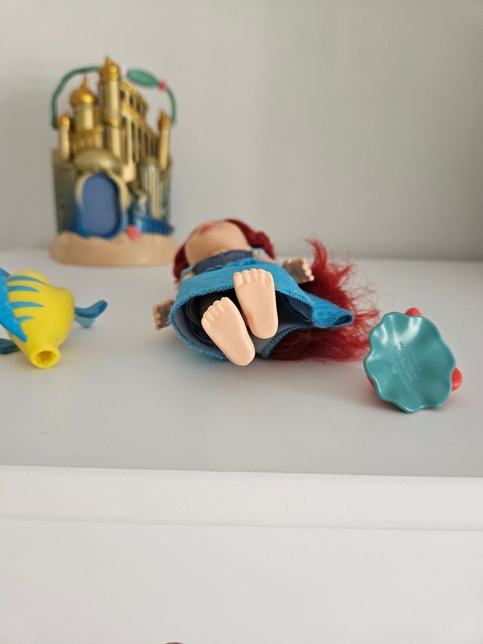 Ensemble de mini princesse ariel petite sirène robe bleue + polochon + sebastien. La maison n'est pas à vendre Cheveux à reprendre si besoin .