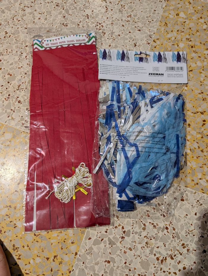 Bonjour Je vends cest deux guirlandes à froufrous neuves, jamais ouvertes ni servies, voir photos vous achetez ce que vous voyez Une bleu et argenté et l'autre probablement comme sur la photos du paquet je suppose. Je ne dissocie pas le lot