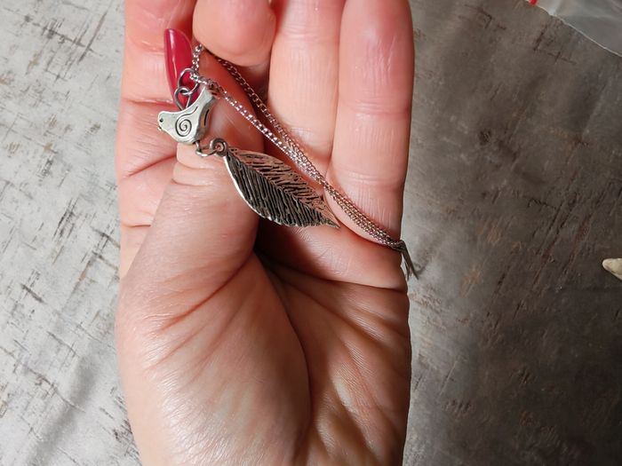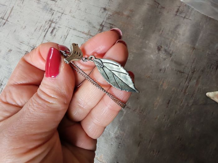 Collier chaîne pendentif feuille et oiseau - photo numéro 6