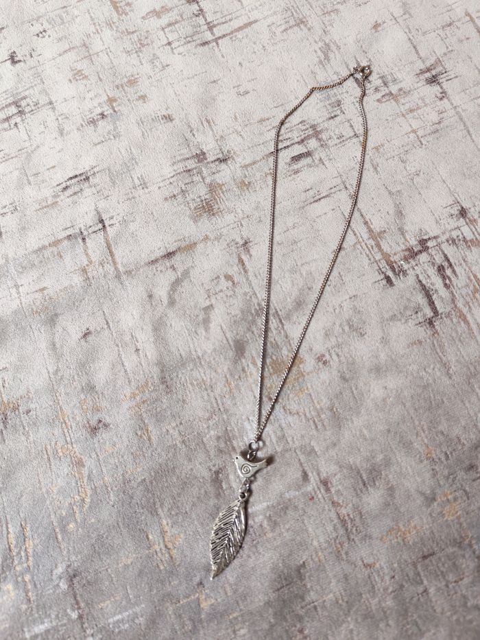 Collier chaîne pendentif feuille et oiseau - photo numéro 4