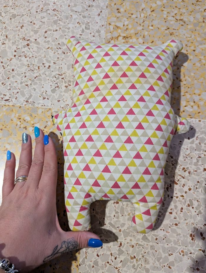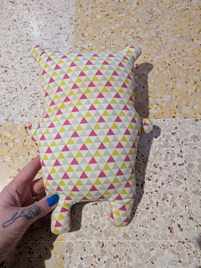 Bonjour Je vends ce petit coussin fait mains, en bon état possibilités de traces d'usure puisqu'il s'agit d'occasion voir photos vous achetez ce que vous voyez