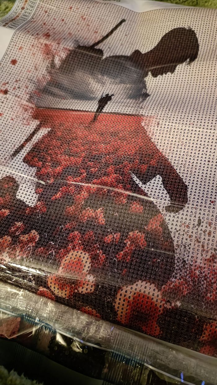 #Diamond painting 💎 30/40🏷️ #Homme #aventurier Champ #fleurie rouge #diamants de forme ronde