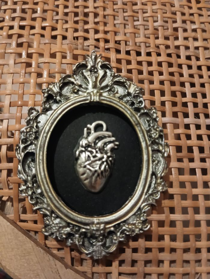 Petit cadre gothique. Ex voto coeur anatomique. Pour décoration. Fait main. Plastique et acier. Neuf.